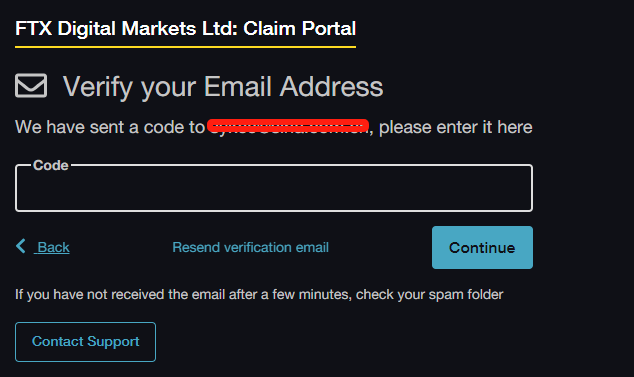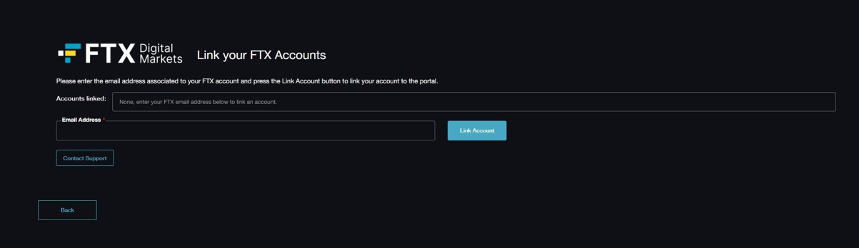 第 2 步:链接 FTX 账户,输入 FTX 账户的电子邮件地址,此时将会把 FTX 账户链接到一个 FTX Digital 索赔门户账户,输入电子邮件地址后,验证码将发送到您链接的电子邮件地址以验证是否拥有这些帐户的权限。