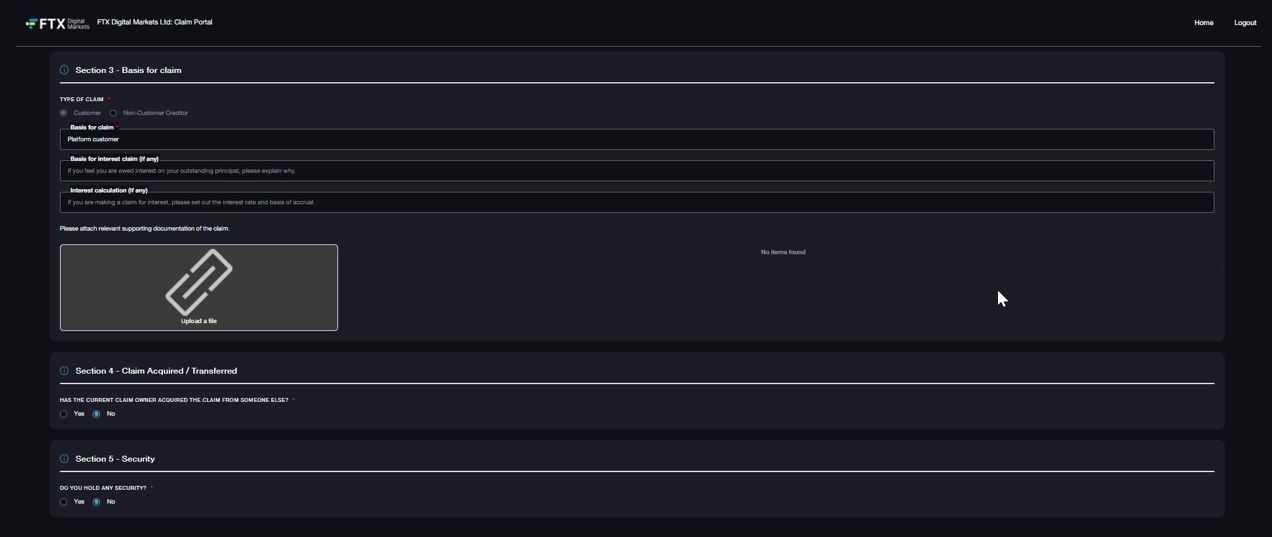 作为 FTX 联合正式清算人,普华永道现在已正式启用了 FTX Digital Markets 索赔 门户网站 ,符合条件的客户和非客户债权人可以登陆该网站提交相关信息进行索赔,总计涉及 5 个步骤,具体如下: