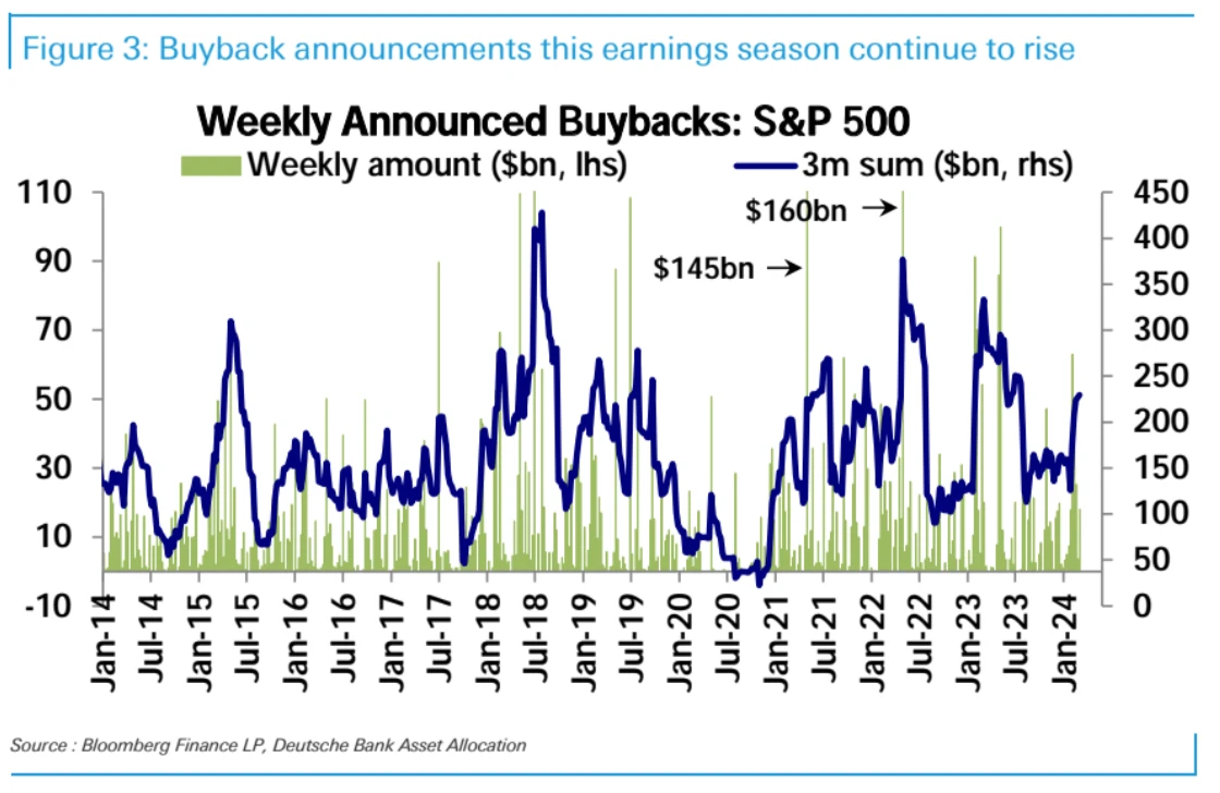 回购力度从每季度 1500 亿美元水平上升至 2250 亿美元