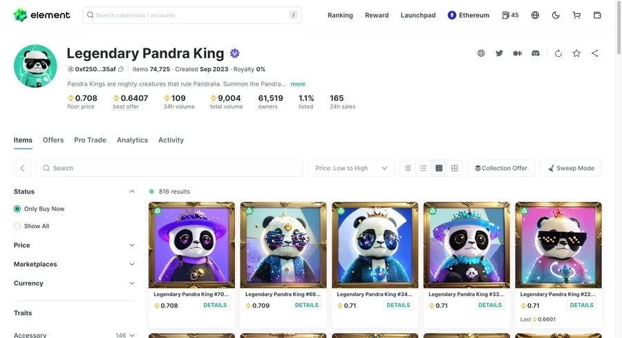 他们的产品中值得注意的一部分是通过特定活动获得的传奇 Pandra King NFT。