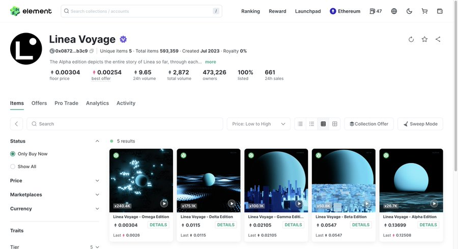 Linea Voyage NFT 因参与 LineaVoyage 而获得奖励,具有不同的级别。