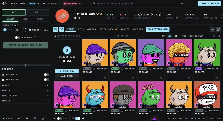 这为 PikeFinance 生态系统的参与者增加了独特的参与度和价值,目前地板价为 9.48 SOL.