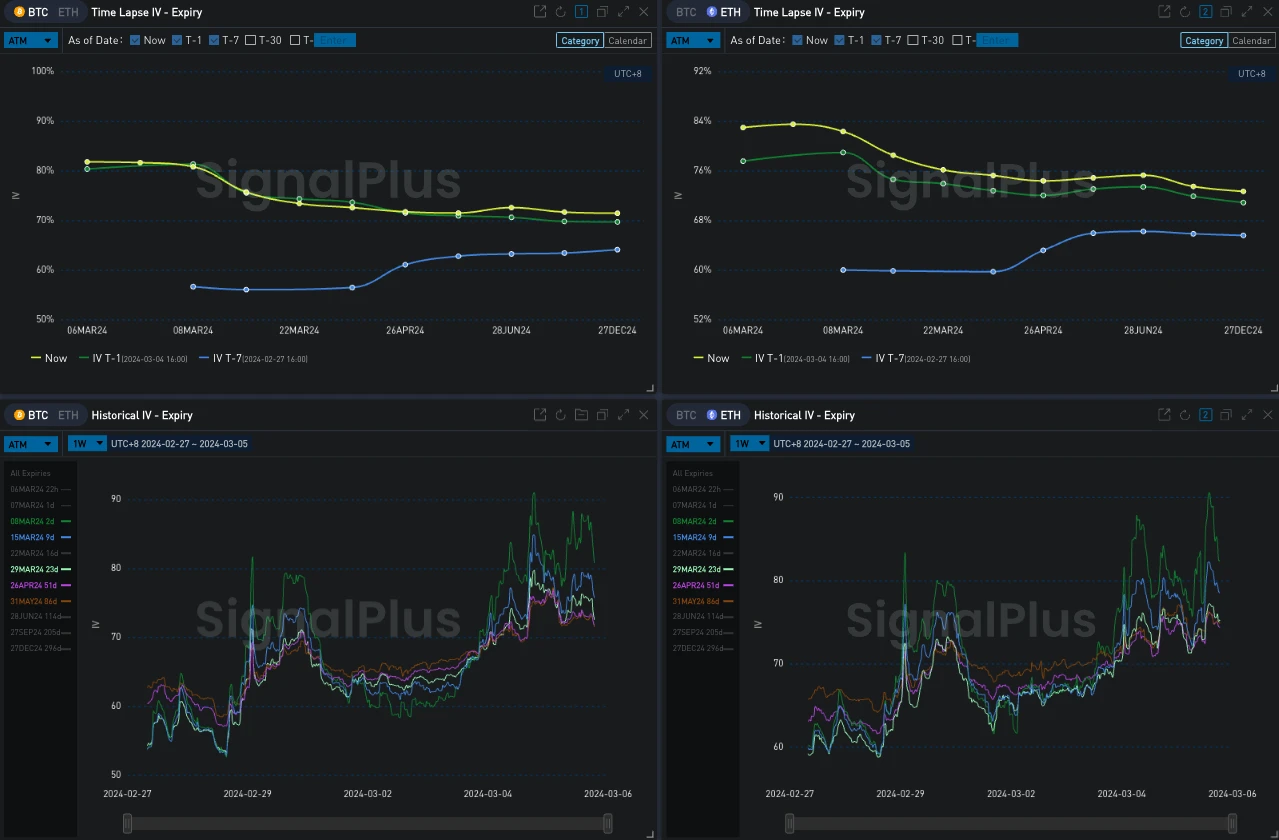 SignalPlus波动率专栏(20240305):BTC在历史高点前遭遇回调,ETH稳步上行追赶