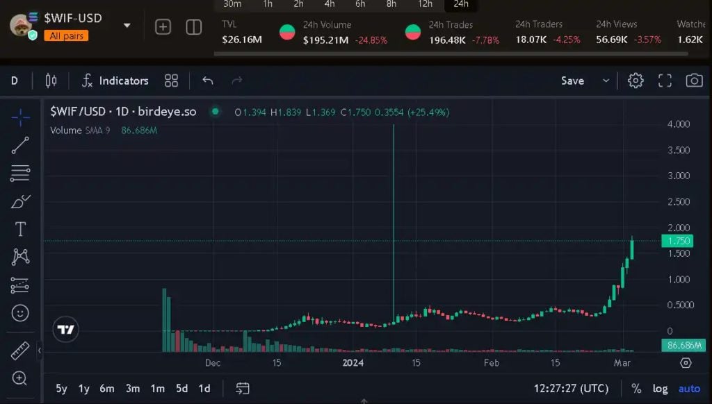 目前,据 birdeye 资料,截至撰稿时,WIF 价格已达 1.75 美元。