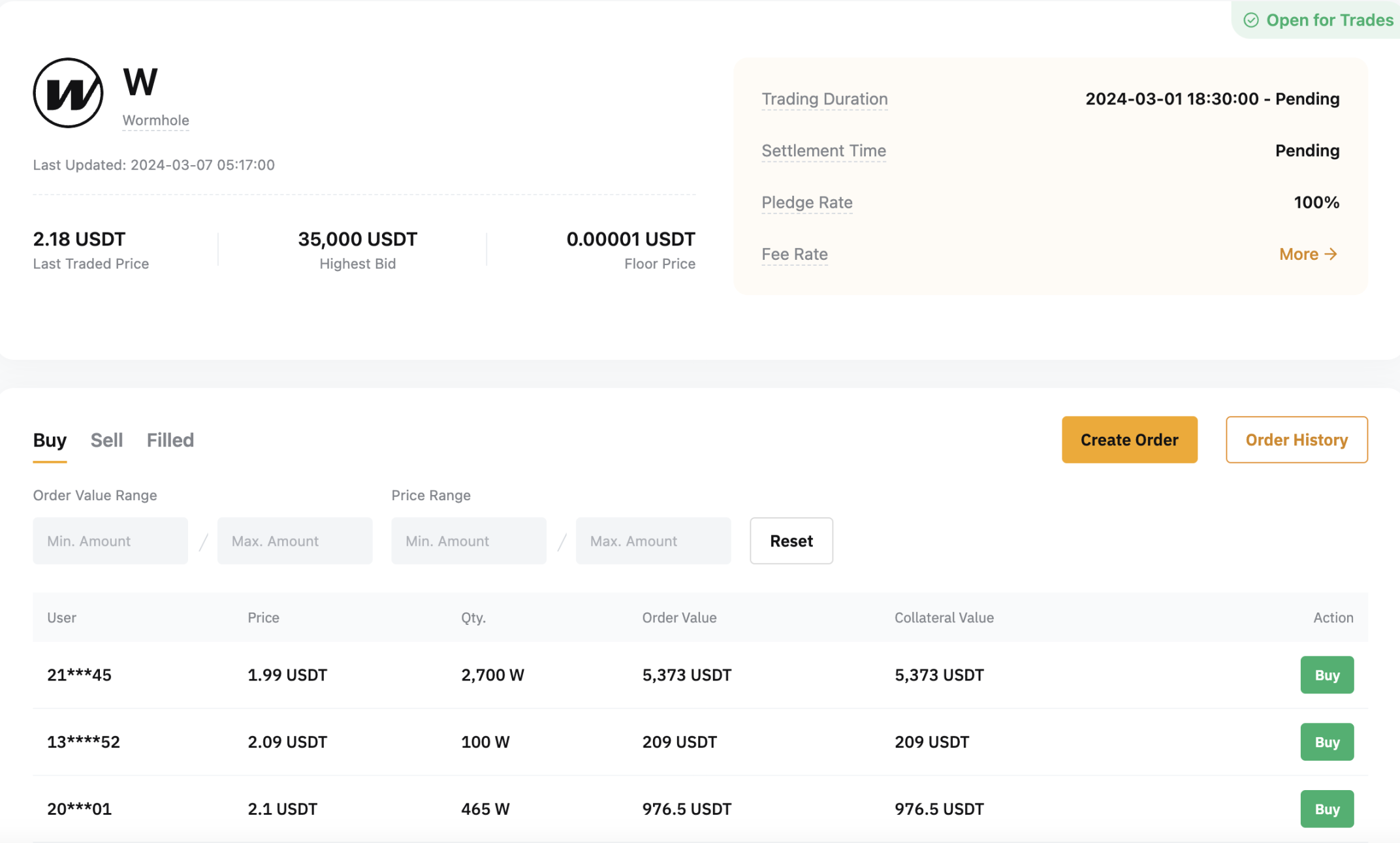 此外, 2 月 29 日消息 ,据 Bybit 网站显示,Wormhole(W)代币将于 3 月 20 日正式发行。Bybit 现已在 盘前交易 上线 W,上次成交价为 2.18 USDT,目前最低买价挂单为 1.99 USDT。