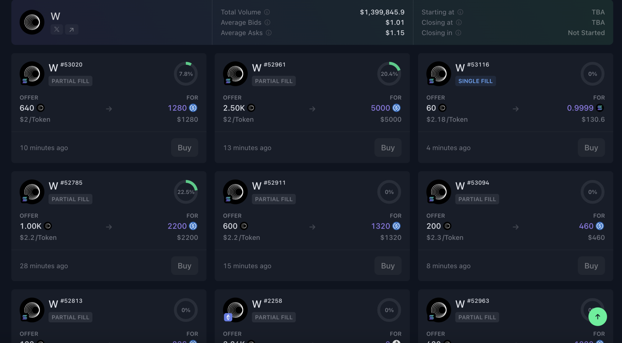 前文提及,Wormhole 以 25 亿美元完成 2.25 亿美元融资,而其初始供应量为 18 亿枚,那么 W 的开盘市价应为 1.38 美元。