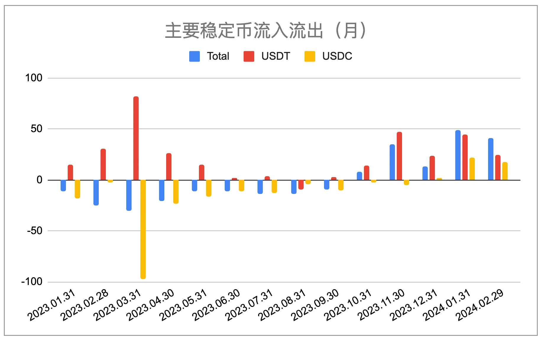 主要稳定币流入流出统计(月度)