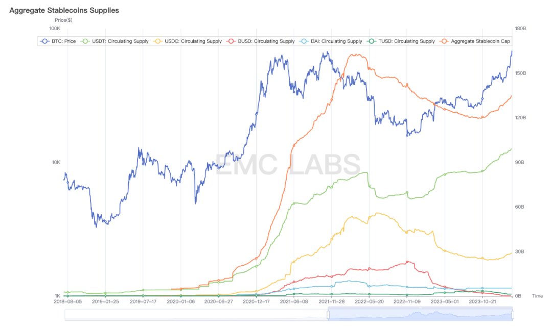 资金供给:稳定币供给早已进入牛市,BTC ETF 通道资金绵延不绝
