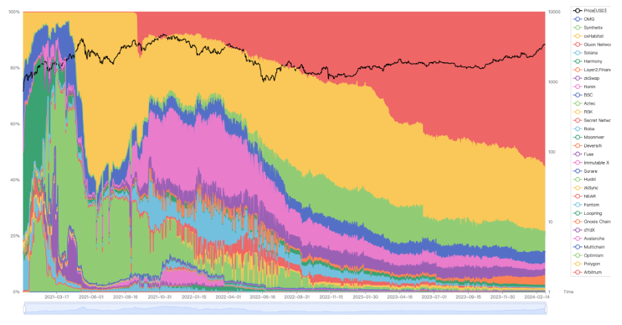 Laye 1、Layer 2 “桥出”ETH 占比