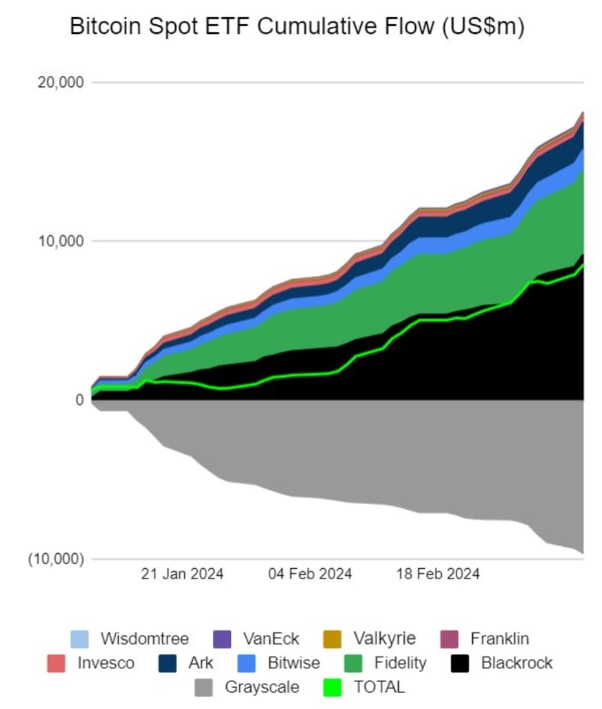 据 BitMEX Research 数据 ,自 1 月 11 日比特币现货 ETF 上市以来,迄今共实现超过 85 亿美元的净流入,iShares 的 IBIT 和 Fidelity 的 FBTC 都在推出后 30 天内,出现史上 ETF 最大资金流入。目前,比特币现货 ETF 一直位居每日交易最活跃 ETF 前 20 名。
