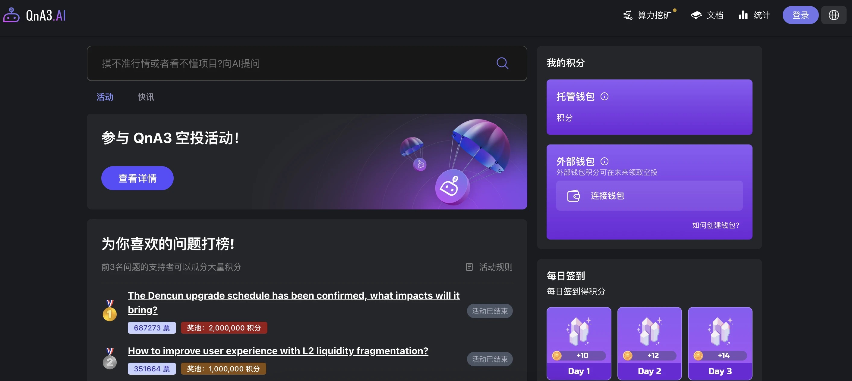 描述:QnA3.AI 是一个由 AI 驱动的 Web3 知识共享和搜索平台,旨在为用户提供准确的加密货币领域知识。同时,它也是 Binance Labs 第六季孵化计划项目之一,并基于 opBNB 而搭建。QnA3.AI 不仅提供信息访问、信息获取,还提供复杂的逻辑分析功能,供用户决策交易等。