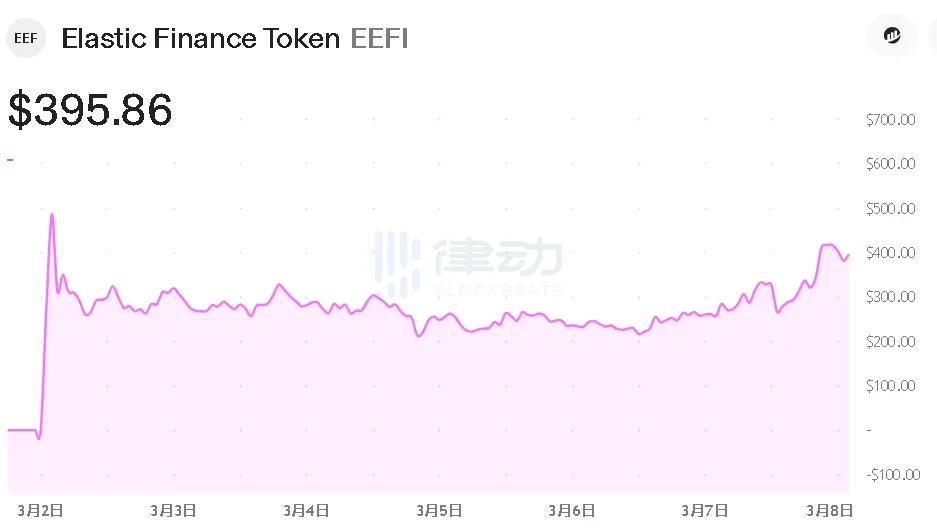 Elastic Finance 推出收益代币 EEFI,可以在所有市场条件下放大和延伸收益,其 (E, E) 博弈论是 ( 3, 3) 博弈论的升级。代币供应总量为 170, 000 枚,其中 25, 000 枚分配给 LBP 活动,该活动与 Olympus DAO 和 Bond Protocol 合作举办。据 uniswap 数据,截至撰稿时,EEFI 价格为 395.86 美元, 24 小时涨幅达 35% 。