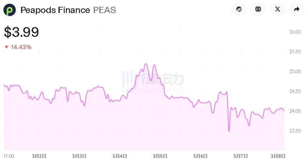 Peapods 使用 OHM 代替 DAI 作为所有上架代币的基础交易对,社区也是频繁互动合作,最近要登陆 Arbitrum 仍然继续得到了 OHM 的支持。据 uniswap 数据,截至撰稿时,PEAS 价格为 395.86 美元, 24 小时涨幅达 4.2% 。