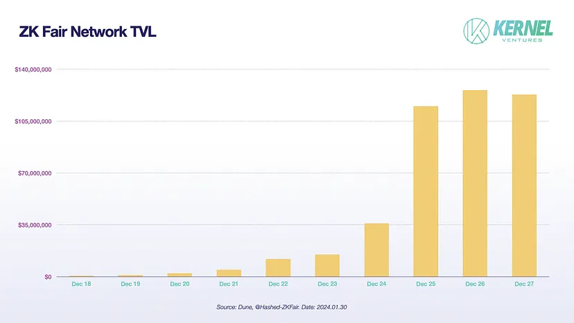 当前铭文(Inscription)垂直领域的公平启动模式受到了广泛的认可,允许散户投资者直接获取原始代币。这也是铭文至今仍然受欢迎的原因。ZkFair 遵循了⌜公平启动⌟的本质。未来,更多链可能采用这一模型,从而导致 TVL 的快速增长。