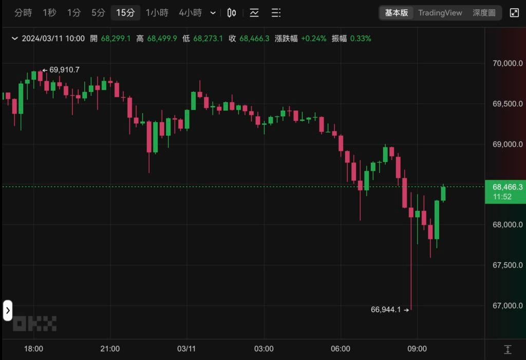 而在刚结束的周末,比特币 尝试突破 70,000 美元失败之后,近 12 小时持续走低。撰稿当下,BTC 现报为 68,466 美元,上下都有大量的抛压与需求,未来走向如何值得持续观察。