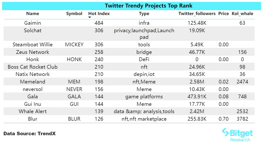 用户热搜代币&话题为:ZRX、PIXEL、Gaimin、AERO;
