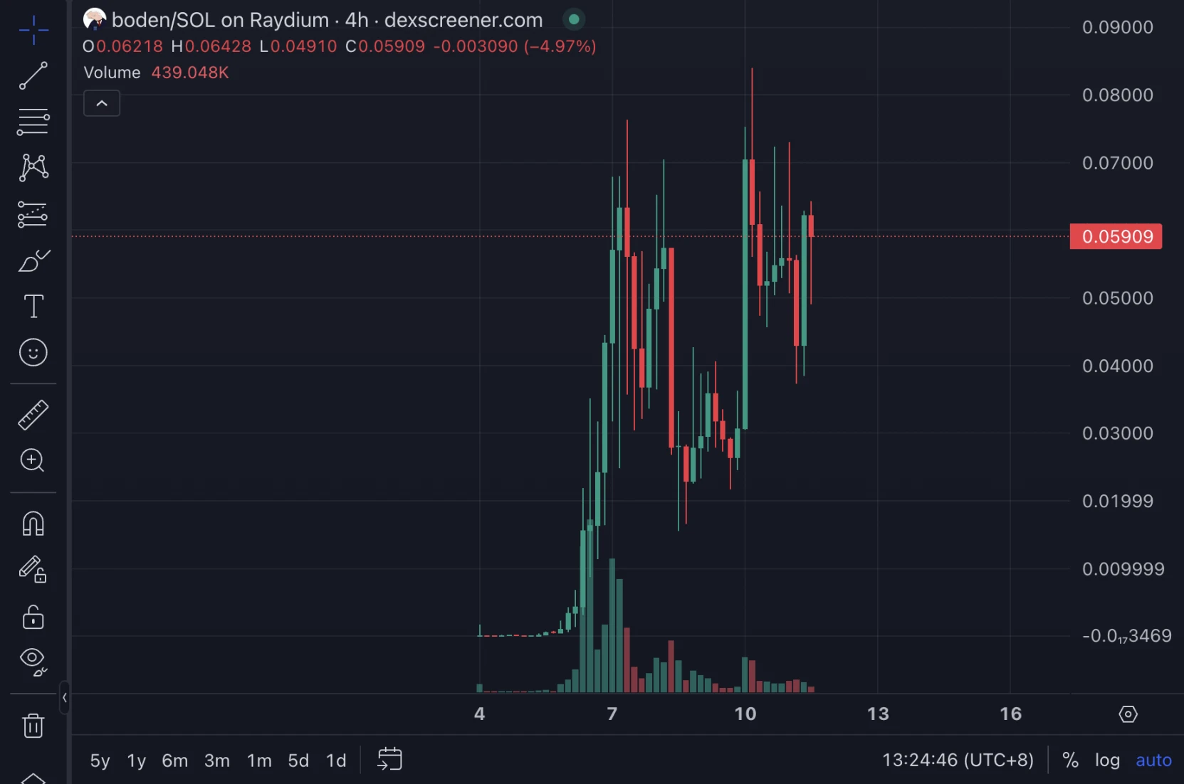 反观,拜登的 boden 垂垂老矣,但也许是拜登支持者的自嘲,表达对拜登的支持,并且通过 memecoin 为拜登拉票。