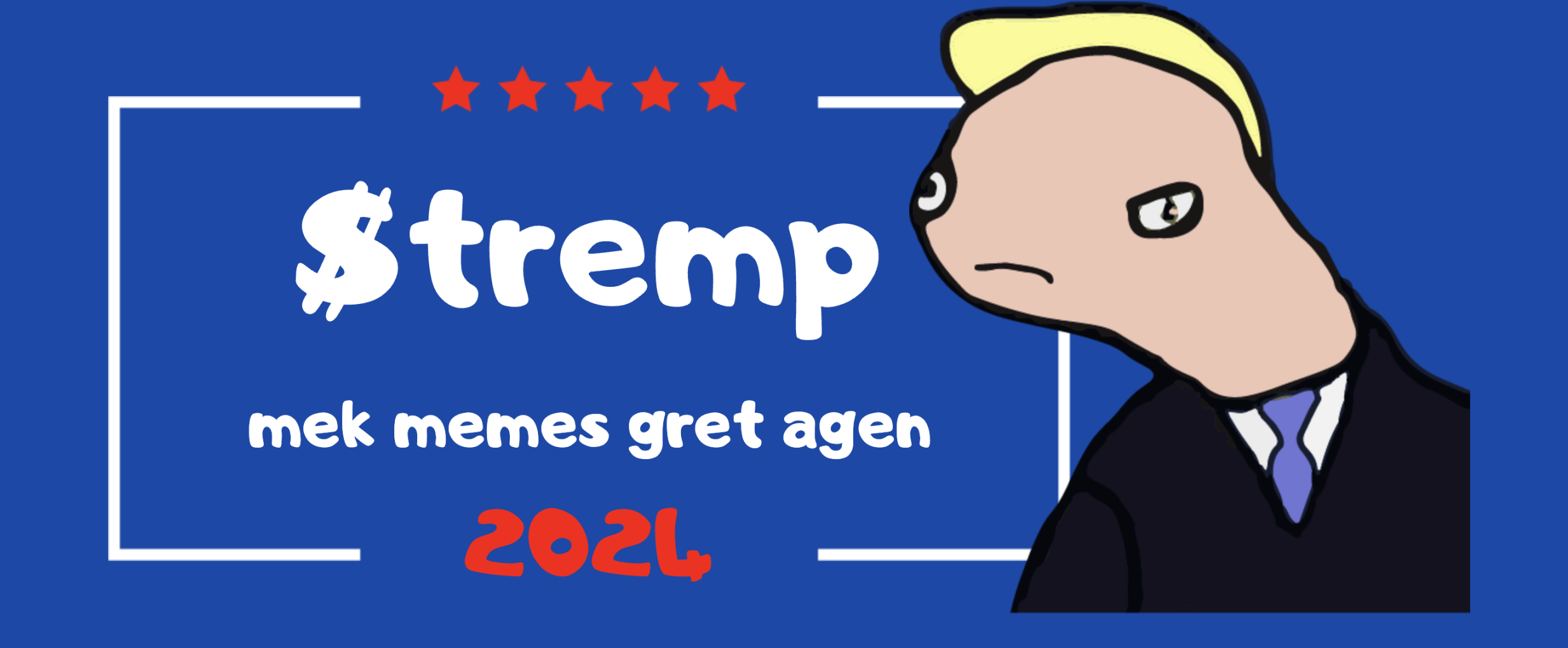 tremp 的表情包是一个金发中年男性,充满着干劲儿,它的口号是「mek memes gret agen」。
