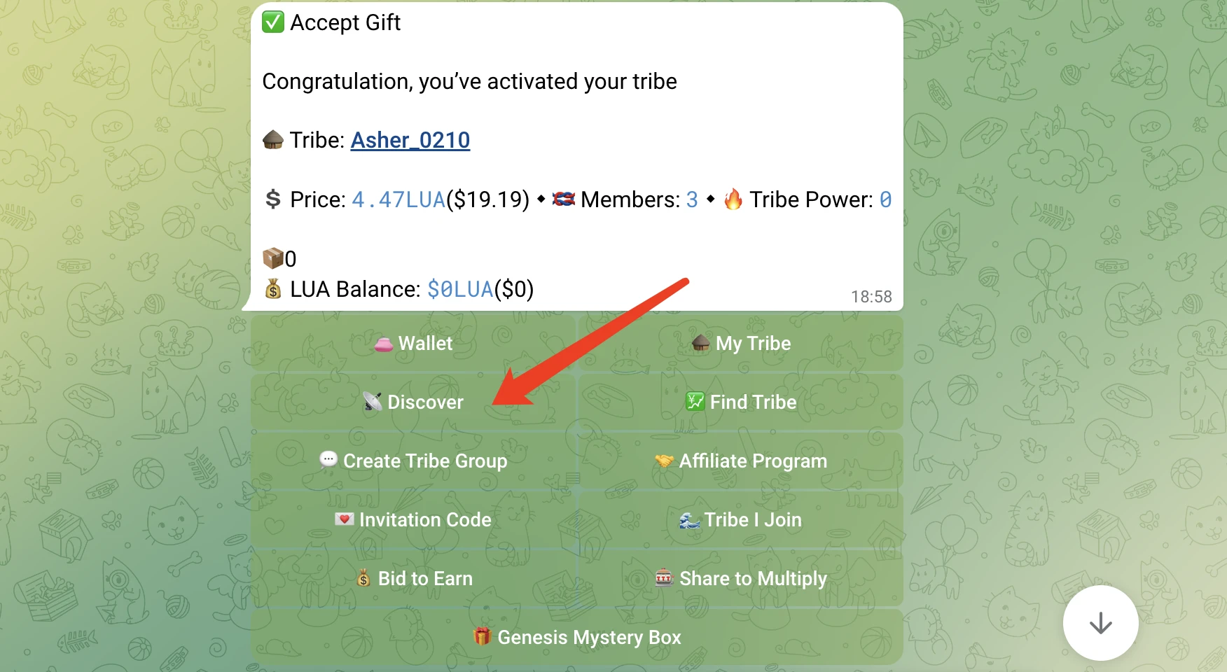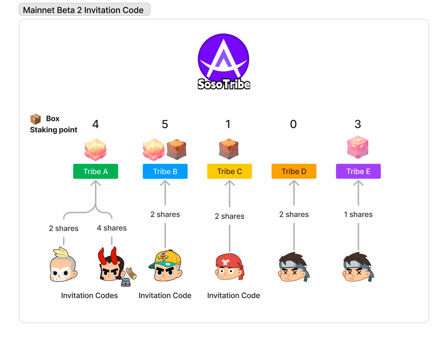 根据官方文档信息需要持有“有效部落”至少 2 股才能获得主网二测的体验资格,其中,“有效部落”是指持有至少 1 点创世神秘盒的部落所有者,如图所示访问 @sosotribe_bot,点击“Discover”并找到不同的部落,一旦找到“小盒子”标志后面是大于 0 的数字均为“有效部落”,若数字为 4 ,即为该部落所有者的质押箱积分为 4。