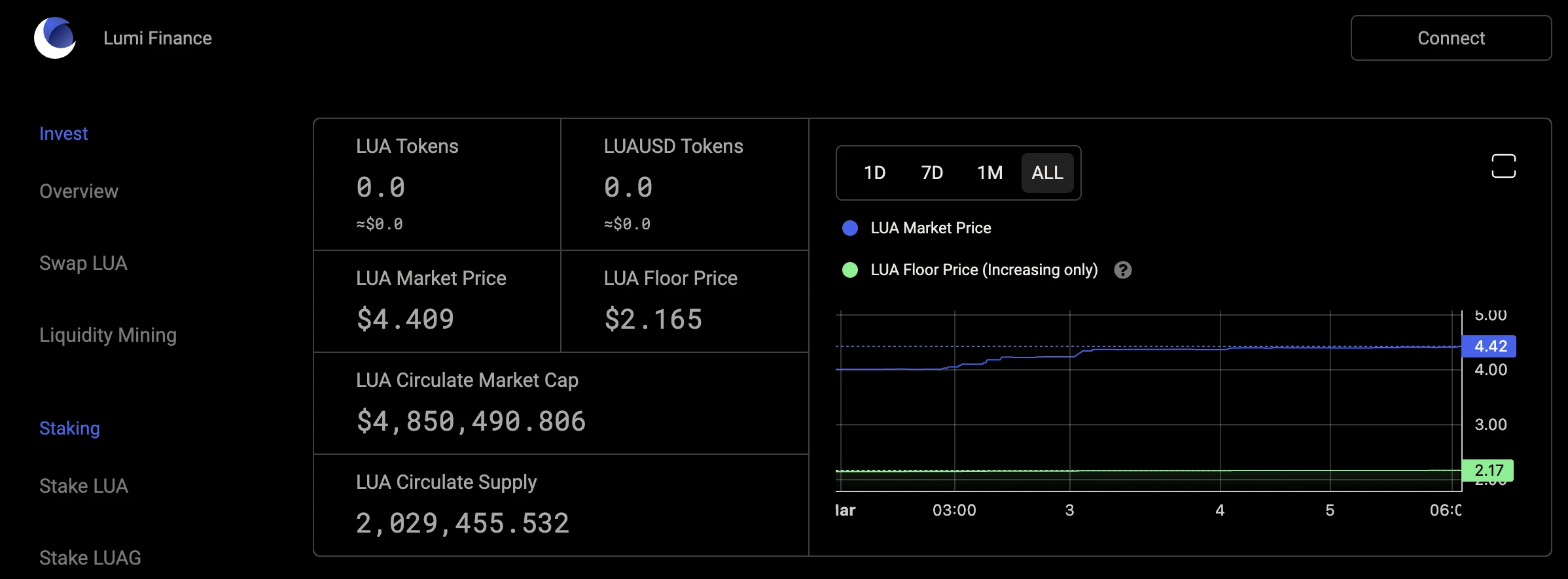 最后,可以通过官方给出的 网站(点击此处) 查看 LUA 代币的价格信息,目前 LUA 价格为 4.409 美元,流通市值约 485 万美元。
