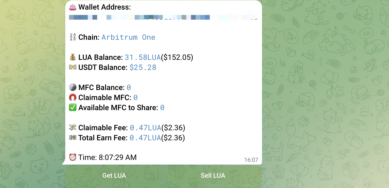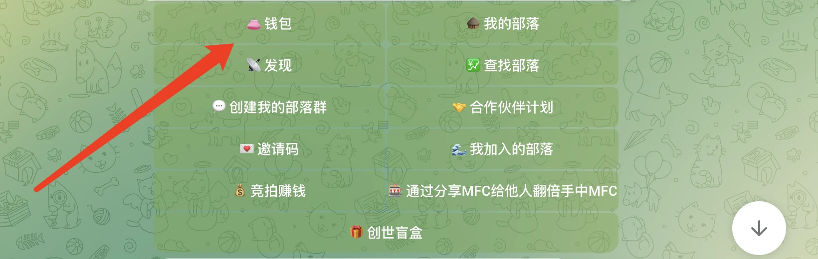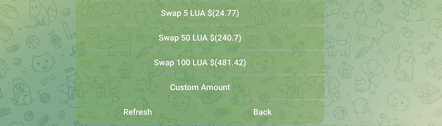 STEP 1. 在 Sosotribe bot 主页面中选择“Wallet(钱包)”即可看到 LUA、 USDT 的数量