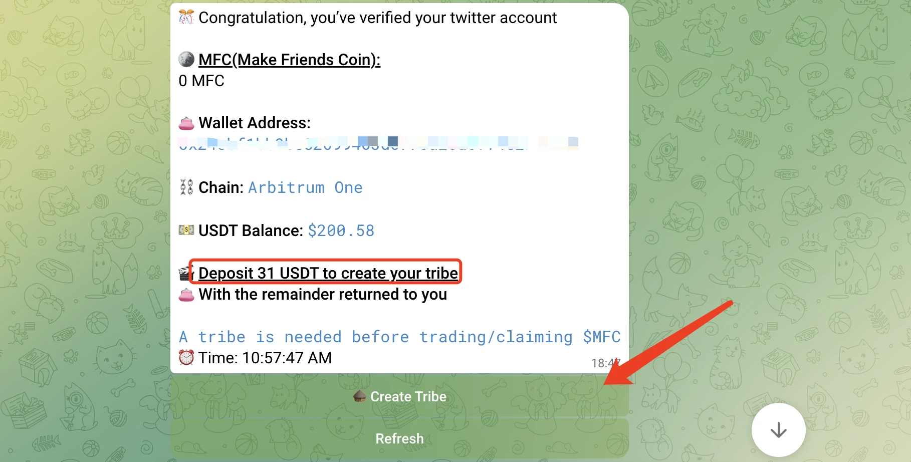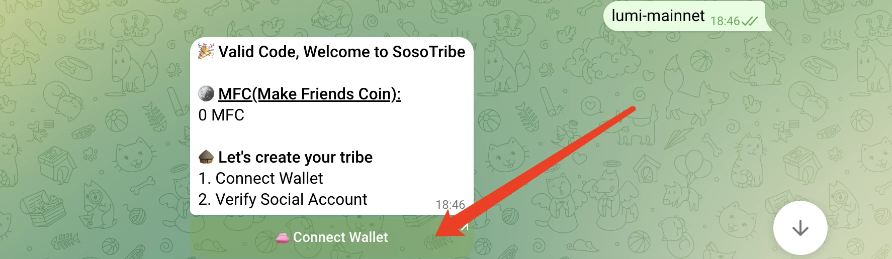 至此,Sodium 钱包已经绑定了你的 Telegram 账号,下面需要创建 Sosotribe 部来参与二测资格获取,具体步骤如下: