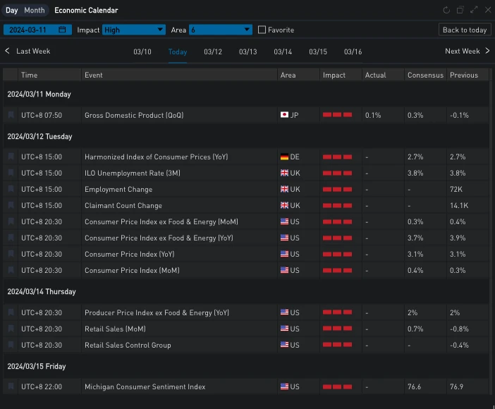 Source: SignalPlus, Economic Calendar,本周重点关注美国 CPI 数据