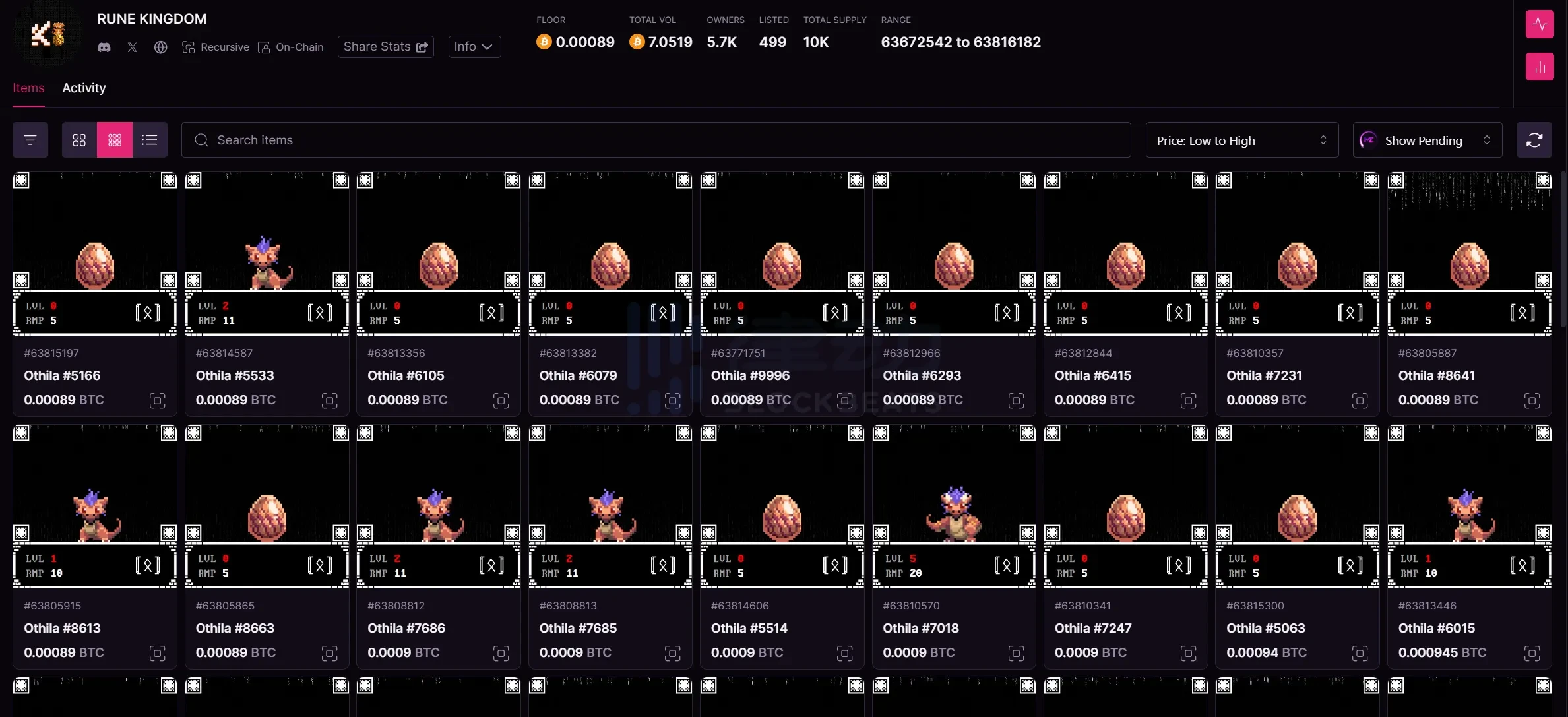 ORANGE ROYAL TOMB 则是在 3 月 6 日以 0.001 比特币的价格发售,总量 314 个,这个系列的持有者在未来也会获得「符文」Token。