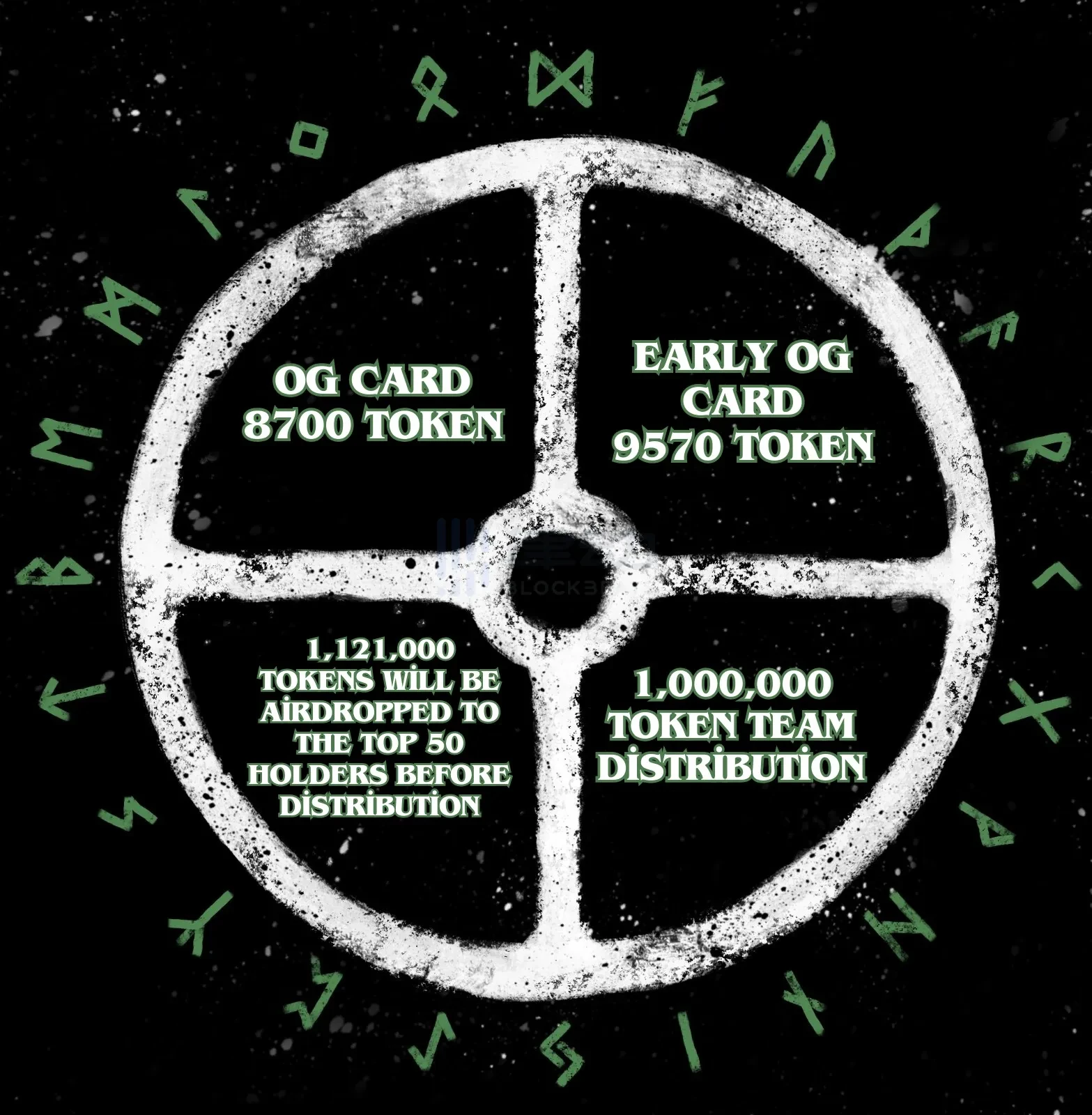 也是一个要做「符文」市场的项目,虽然在 BRC-420 上发售 OG 卡的结果不尽人意,但是项目方还在保持活跃,也公布了未来的「符文」Token 经济模型: