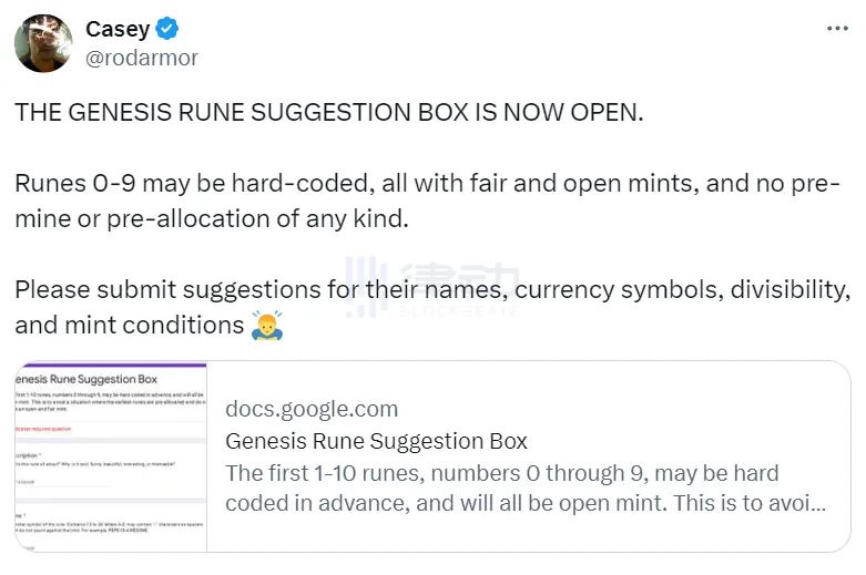了解到这点之后,想必您也会 get 到「符文」概念小图片目前存在的风险。首先,「符文」协议的最终解释权在 Ordinals 协议官方手里,尤其是 Casey 本人曾发推文强调过,前 10 个「符文」Token 可能是「硬编码」,也就是不会开放部署而是直接在代码里写死了。这前 10 个「符文」Token 会都是公平的开放铸造,而且不会存在预挖/预分配等情形。