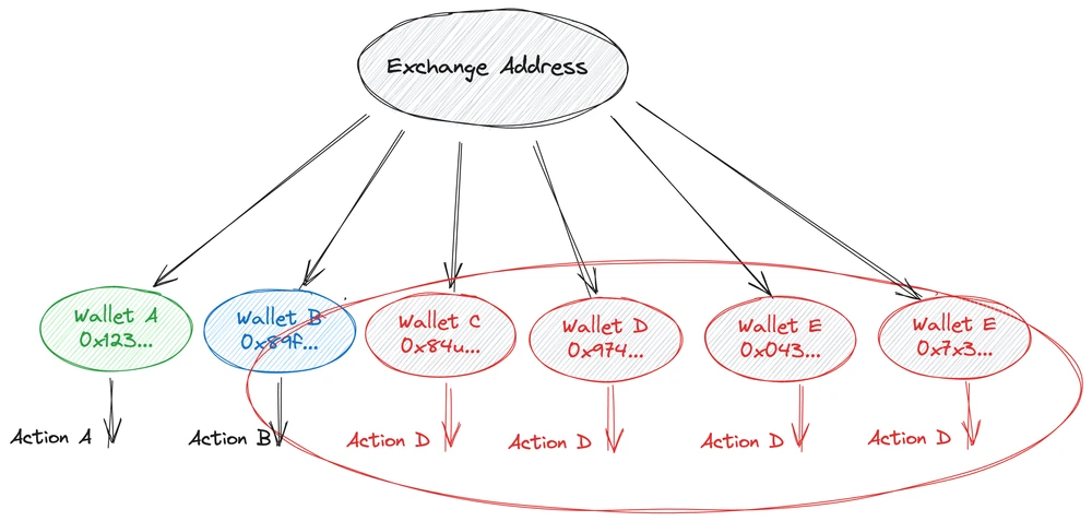所有权图整合了一个用户可能在一个用户 ID 下跨不同生态系统进行的所有交易。这确保用户的评估是基于他们所有的交易,而不是基于在任何特定生态系统中的活动的零散操作。这项技术也是手动标记合同、协议中继热钱包和拥有数百个或在某些情况下数千个钱包的大型 Sybil 所有权集群的几个步骤中的第一步。