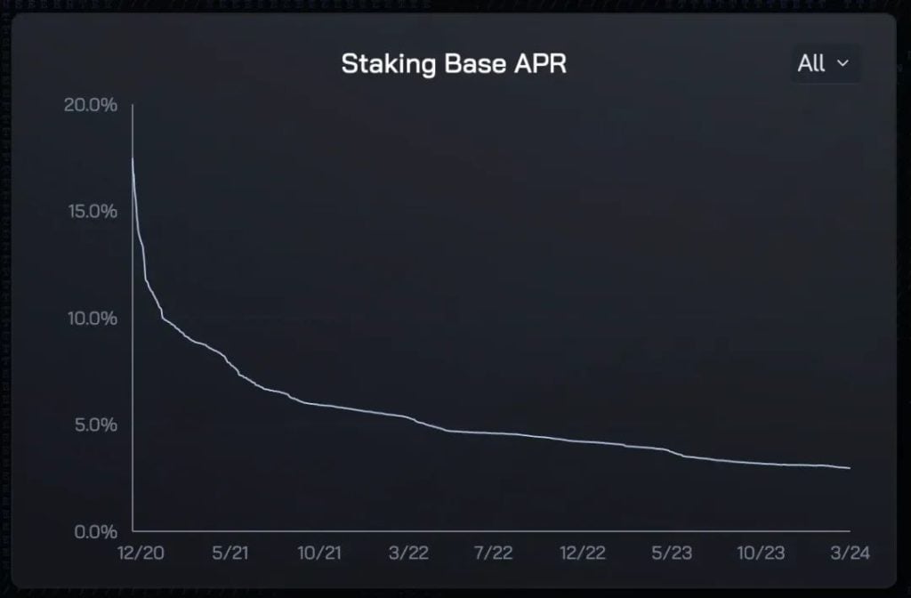 任何已发行的 USDe 都可以被质押,并赚取 ETH 质押加上永续资金收益。目前,Ethena 分配的是支援 sUSDe 的资产所产生的收益,而支援未质押 USDe 的资产所产生的收益则被送入保险基金。我估计,长期的分配比例将是:协议产生的收益的 80% 归入已质押的 USDe(sUSDe),而产生的收益的 20% 归入 Ethena 协议。