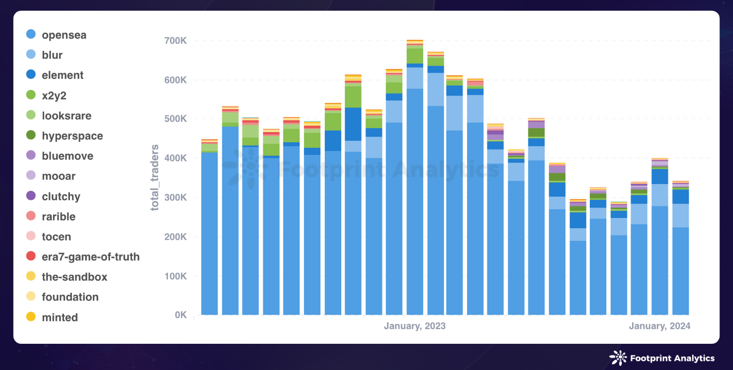 数据来源: NFT 交易市场月用户数 - Footprint Analytics