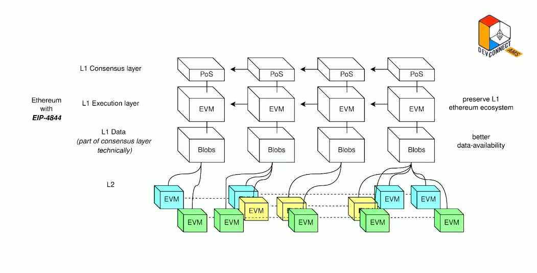 对于不太熟悉以太坊开发术语的读者们,你无需了解上述每一项 EIP 的具体内容,只需将目光聚焦于本次 Dencun 最为重要的一项更新 —— EIP-4844 。