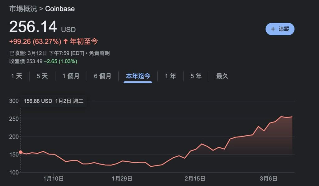 Coinbase跃升全球第4大上市交易所!股价一年狂喷210%、市值逼近500亿镁