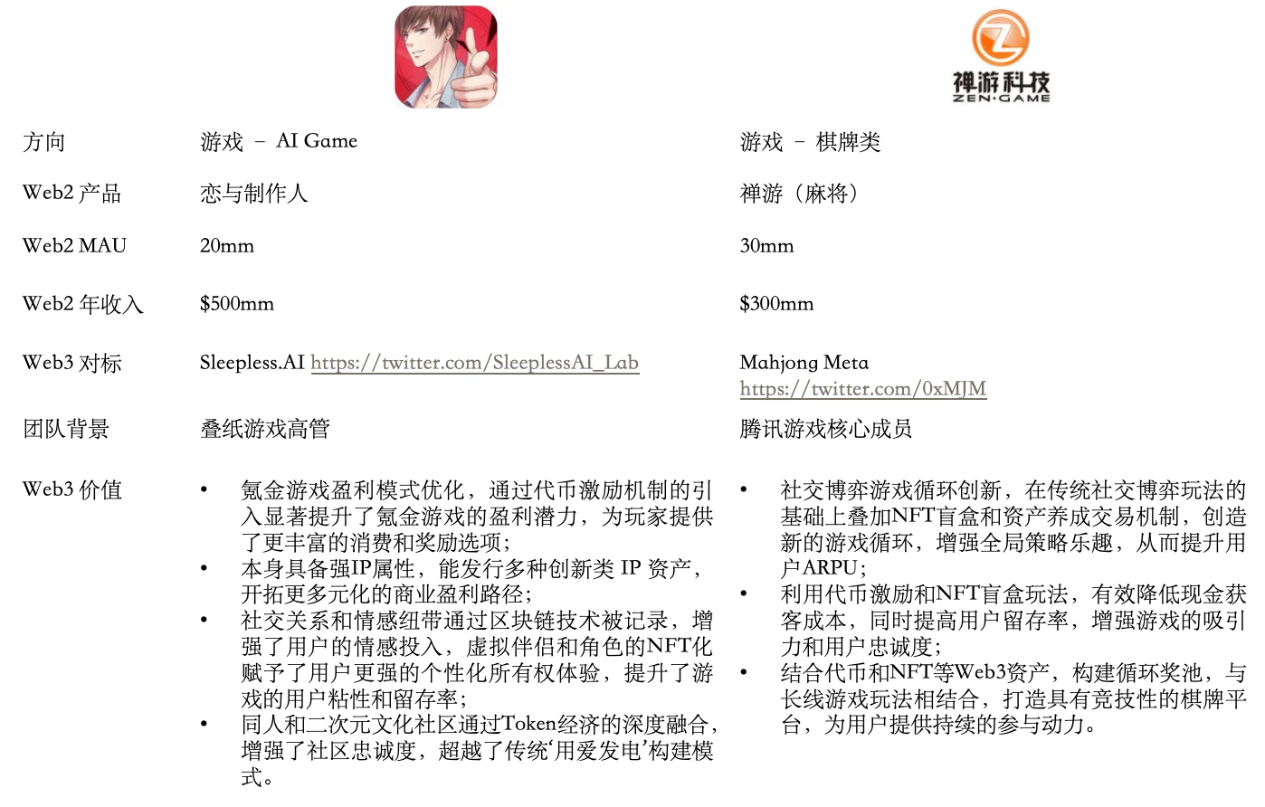 已在Web2中验证的商业模式: 在 Web2 里已经成功被验证商业模式,尤其是具备高 ARPU 的特征,良好现金流和高利润率的潜力的方向。若能叠加该垂直方向的用户行为、用户关系链、用户数据等有机会被资产化的可能性,同时场景可被嵌入交易、能加上盲盒等概率类玩法的模式,商业潜力能进一步释放。