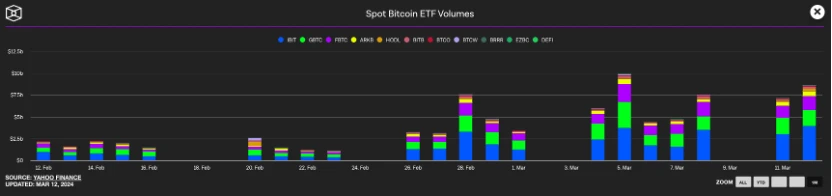 各大比特币 ETF 的成交量数据成为了市场情绪的晴雨表。