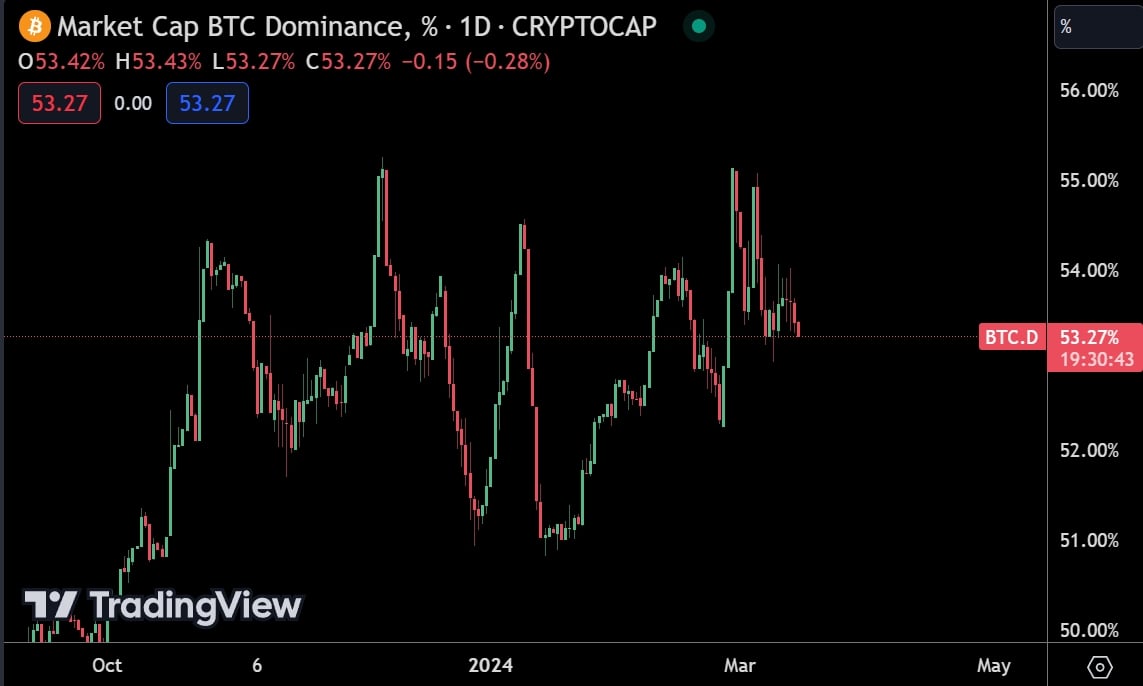 不过在币市闪崩之际, Kryptanium Capital 共同创办人 Daniel Yan 今日发推 表示 ,在牛市中,5% 规模的闪崩是相当健康的,这并不奇怪,真正令人惊讶的是,比特币市占率长期以来首度与比特币同时下跌,山寨币季节真的快要来了,目前比特币市占率已从数日前的 55% 以上降至 53.27%。