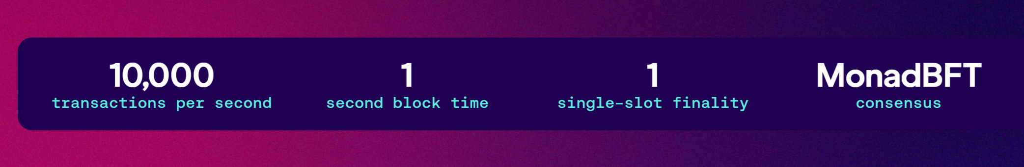 在此基础上,Monad 还提供 1 秒的区块时间和 1 秒的单个 slot 实现(single slot finality),从而支持比现有区块链更多的用户和更好的互动体验,同时提供更便宜的每笔交易成本。