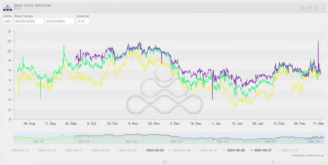 在期权市场上也有一些可能的线索。在现货 BTC ETF 申请公布后,BTC 和 ETH 的远月期权偏度均出现显着上升,并于 2023 年 11 月达到峰值。相比之下,现货 ETH ETF 申请公布后并没有引起期权交易者的关注。价格看涨情绪增加, 2 月份远月偏度加大更有可能是受到流动性回归的影响。