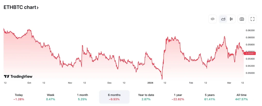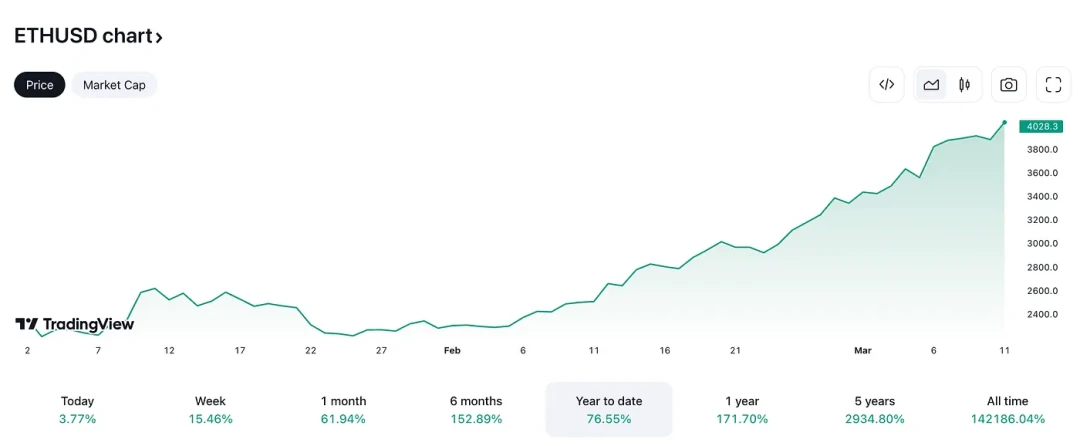 值得注意的是,虽然 ETH 在汇率方面的表现相比 BTC 相对较弱,但在价格涨幅方面,ETH 的价格表现并不逊色于 BTC,甚至年初至今的涨幅还略优于 BTC。