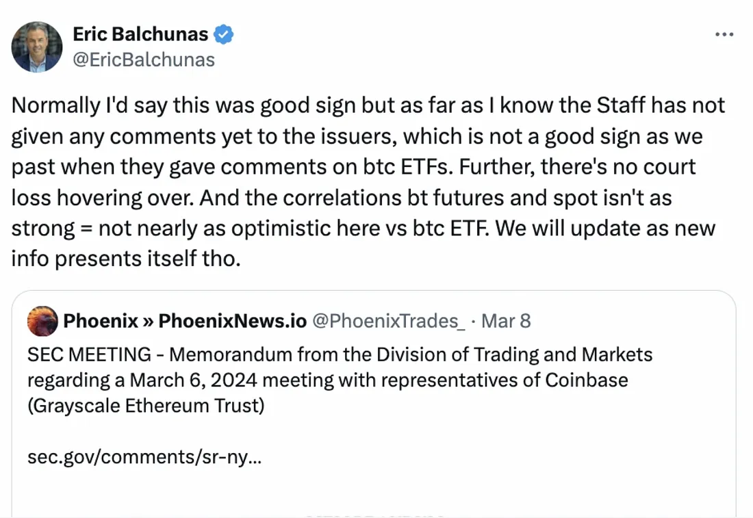 然而,随着更多细节的披露,分析师们逐渐降低了对现货以太坊 ETF 的预期。