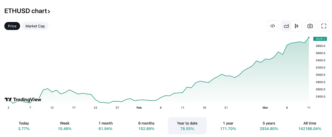 现货 ETF 的获批只会加速上述进程,但如果没有获批也无妨。以太坊的价格可能会出现一些波动,甚至大幅回落。然而在牛市环境下,下跌造成的缺口将很快会被填补,以太坊价格的上涨趋势不会发生根本性改变。