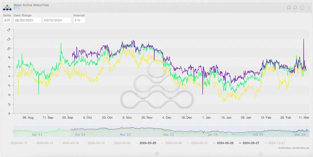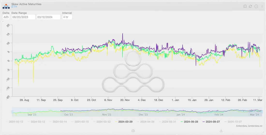 相比之下, 现货以太坊 ETF 申请的消息并没有引起期权交易者额外的看涨情绪,今年 2 月远期期权偏度的上升更可能是由于流动性回归的影响 。