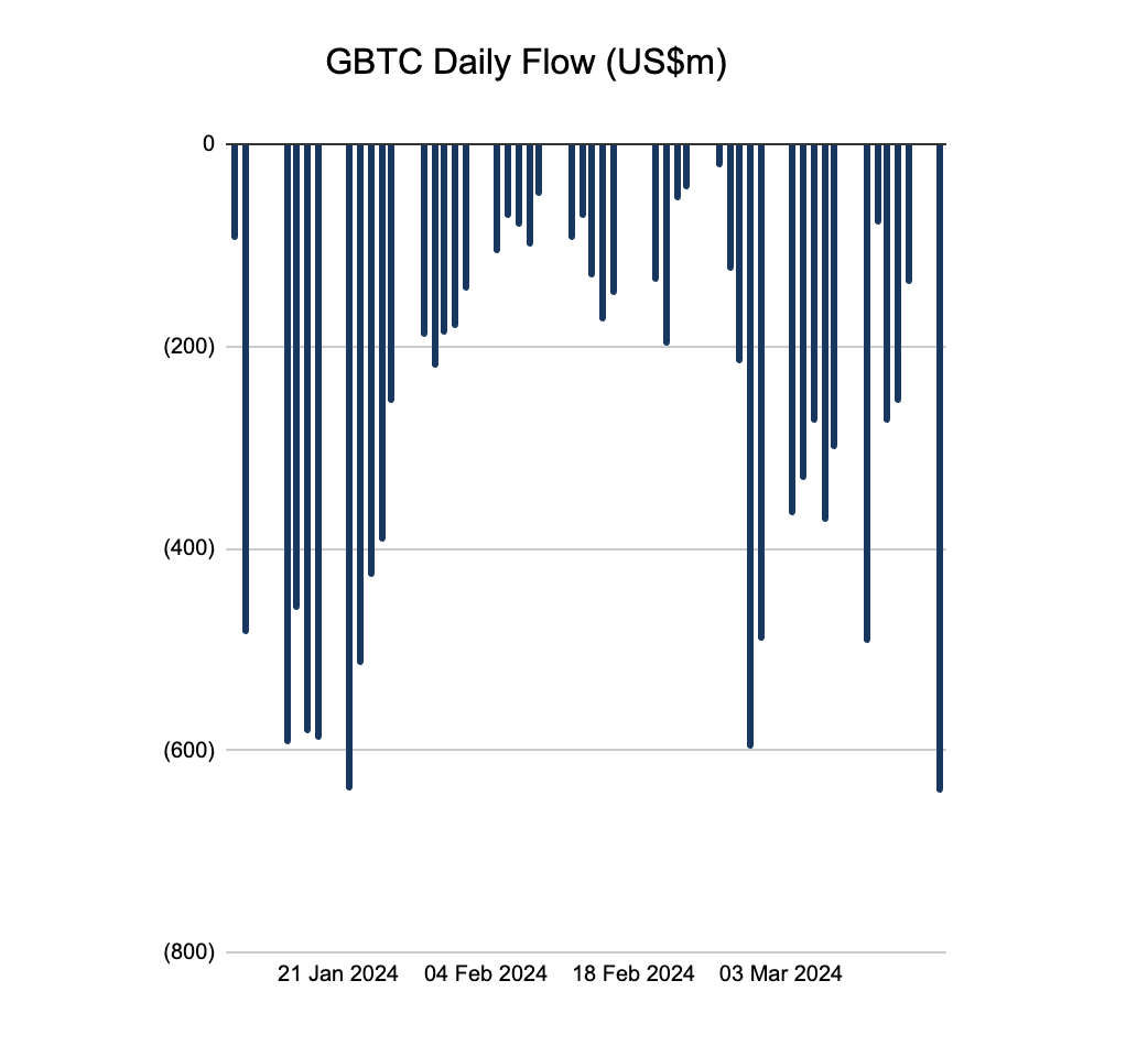 3月18日,灰度GBTC净流出6.425亿美元,创1月11日以来单日最高流出记录
