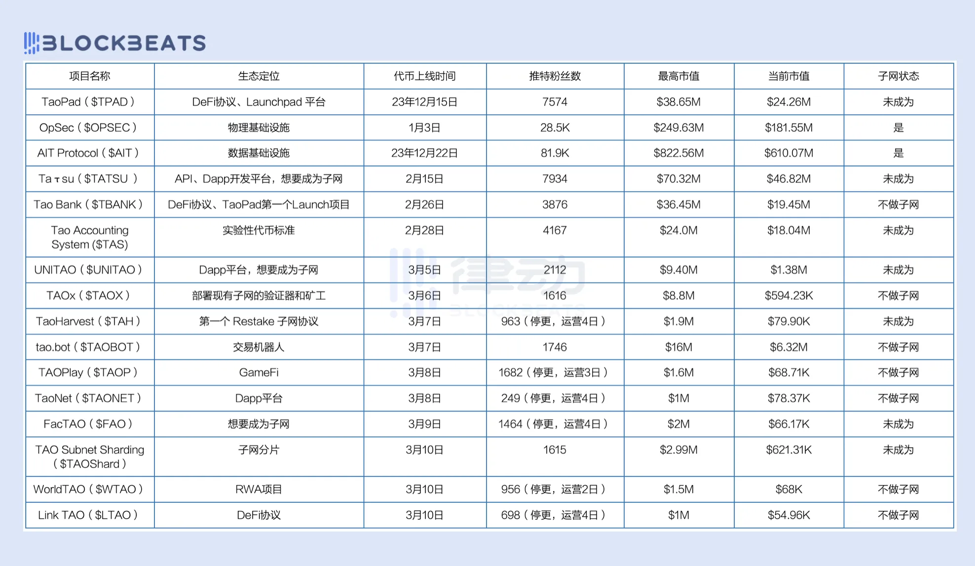 𫔭 年以来,AI 板块热度一直很高,投资回报比其他赛道更为亮眼。带有 AI 概念旧专案纷纷拉盘、快速带来高倍收益的新专案也成堆出现。在这之中,Bittensor 代币 TAO 从 1 月的 230 美元升至 700 美元上下,翻了三倍,而同时期出现的 Bittensor 生态专案如 TaoPad(TPAD)、AIT Protocol(AIT)、OpSec(OPSEC)以及之后紧接著出现的许多小型专案涨幅倍数都超过了 TAO。