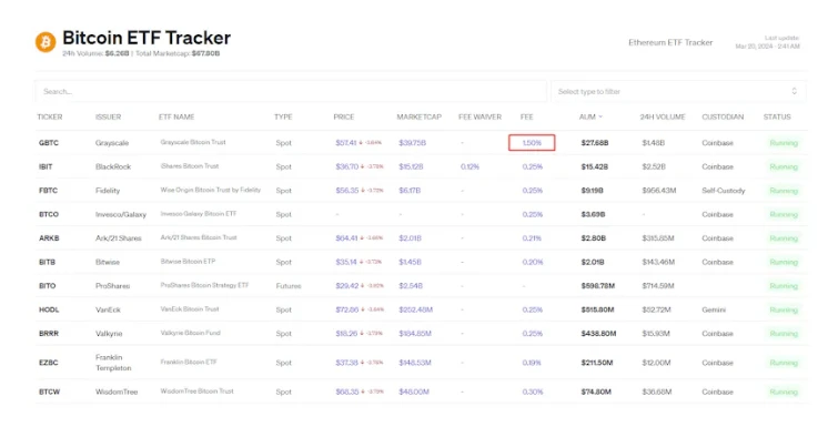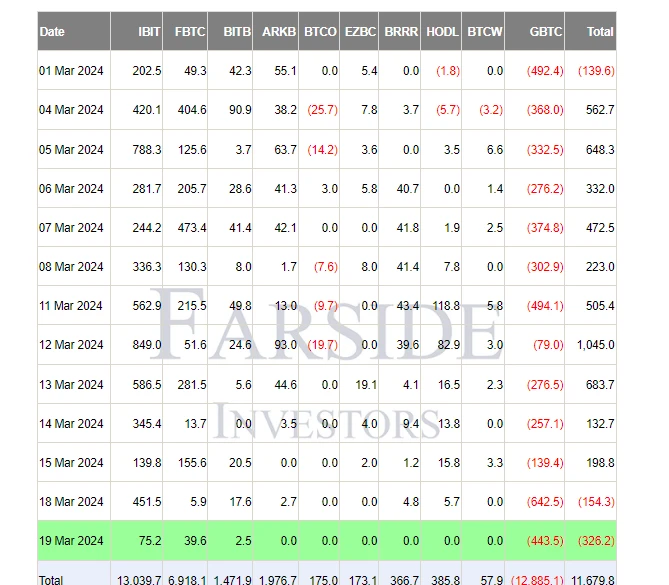A: 3 月 18 日,GBTC 提现击破记录,一天狂提 6.4 亿美金,造成了 BTC ETF 历史上为数不多的净流出日,净流出金额达到 1.5 亿美金。