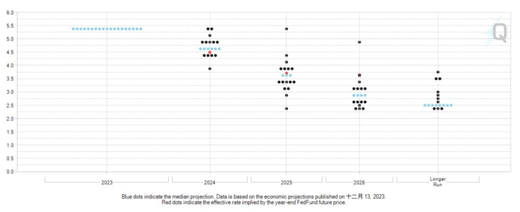另外市场关注的利率点阵图则显示,官员们预期到 2024 年年底为止,将降息 3 次,每次 1 码(0.25%)。且 2025 至 2026 年也各有 3 次的降息,进一步将联邦基金利率推向 2.6% 左右的「中性利率」。