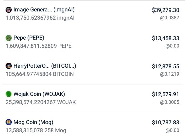 后来,Lacroix 再将其中 536,000 美元的资金桥接回以太坊,并在 Milady 及其衍生 NFT(Remilio)上花费约 46 枚 ETH(161,000 美元),并𫔭始交易迷因币、AI 币,包含 $imgnAI、$Pepe、$BITCOIN,目前共持有超过 140,000 美元的资产。( Lacroix 地址 )