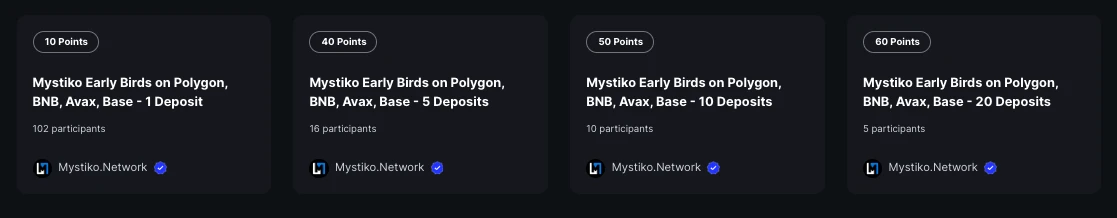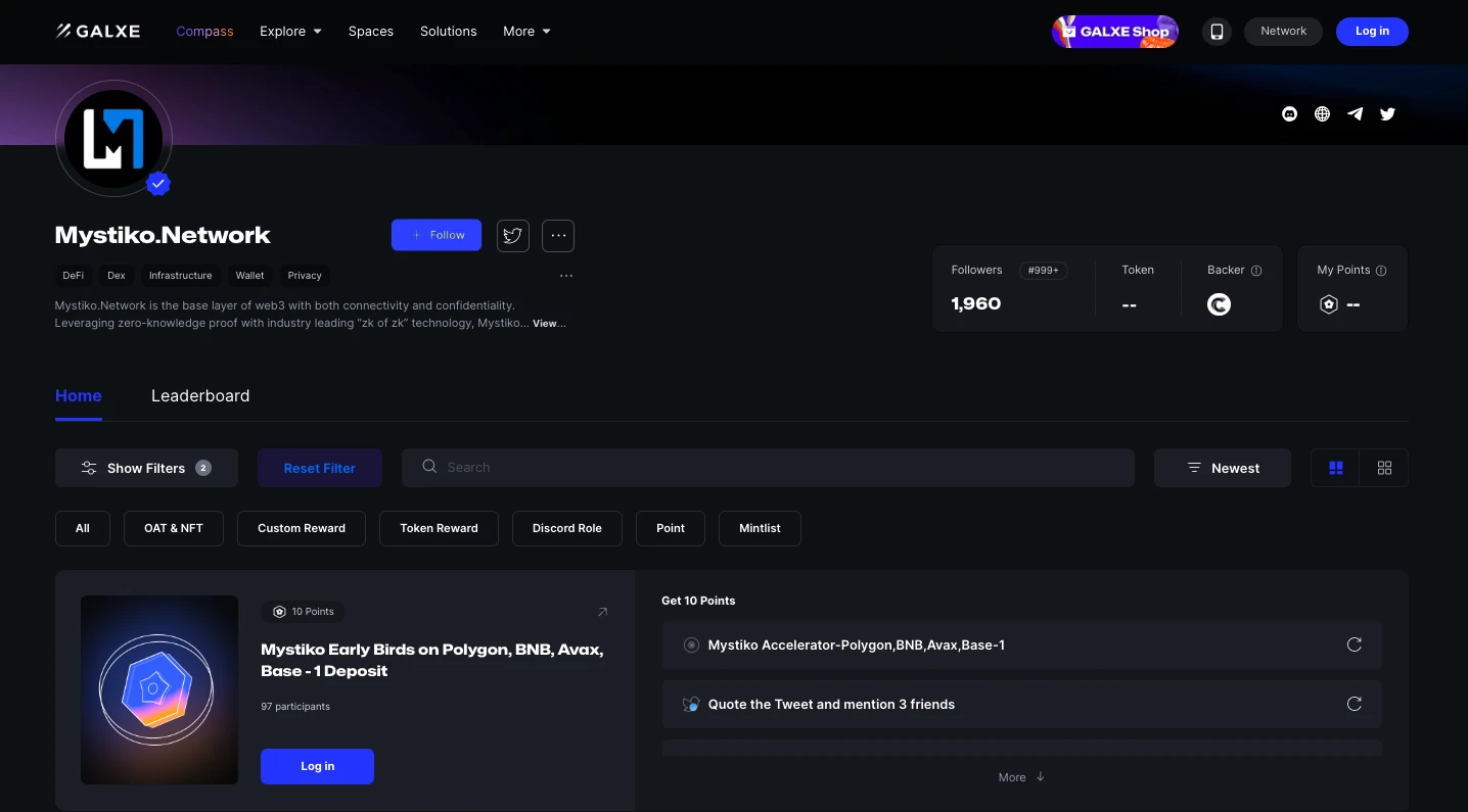 目前,Mystiko 已在 Galxe 上线多项任务,用户完成任务可以获得积分(Points), 有较大空投预期。 Odaily星球日报带大家手把手参与 Mystiko 交互。